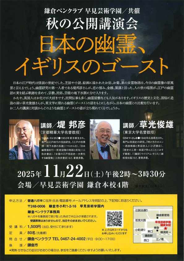 ①「普通はがき」に住所・氏名・電話番号を記入してお送りください。 〒248-0006 鎌倉市小町1-2-16 早見芸術学園内 鎌倉ペンクラブ